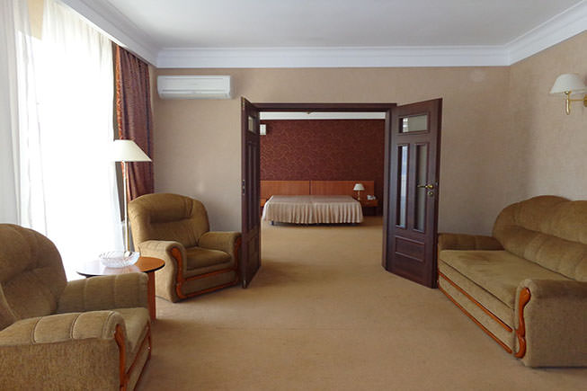 Двухкомнатные номера во втором корпусе оснащены просторной террасой и санузлом с большой и удобной ванной.