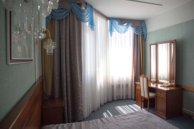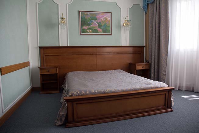 Люкс в третьем корпусе предназначен для проживания 2-3 гостей. Он разделен на спальню и гостиную. Также имеется 2 балкона.
