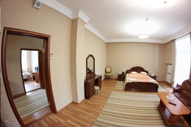 Номера данной категории состоят из спальни и гостиной с выходом на террасу. Также имеются прихожая и санузел, оснащенный современной сантехникой.
