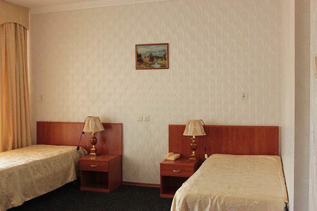 Номера для проживания двоих гостей расположены во втором корпусе санатория. Они оснащены холодильником, ТВ и кондиционером.