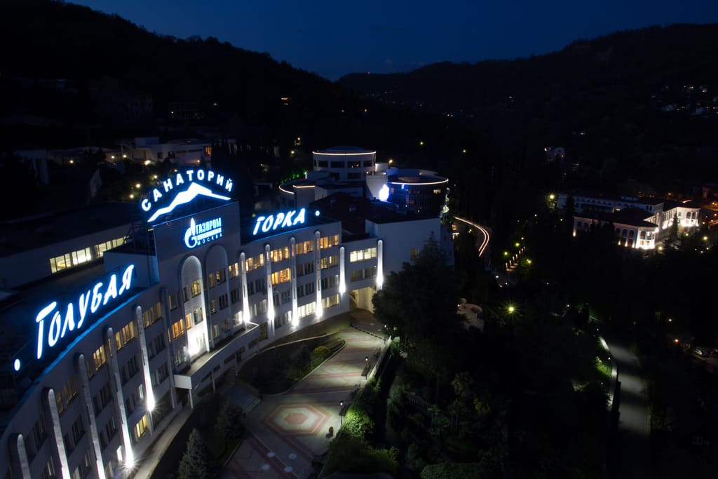 Санаторий «Голубая горка» находится в Сочи у подножия горы Большой Ахун недалеко от Черного моря. На территории высажены тропические деревья, есть беседка для уединения, а также имеются теннисные корты, спортивная и детская площадки, места для терренкура и бесплатная парковка.
